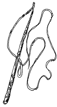 Чоловік пускає собаку, очі йому заплющуються, рот роззявляється, і він уже лежить тихо. А пес трохи відсапався, ожив і зразу йому до горлянки, хоче загризти. Але я кажу: «Не можна!» — а сам хтозна-як його боюся. А чоловік уже очунює. Розплющив очі й дивиться на мене, як гірський лев. І гарчить, наче гірський лев. А я боюся його не менше, ніж собаки. Що мені робити? Сокиру я забувся. То знаєте, що я зробив? Я його ще раз копнув під вухо. А тоді скидаю з себе пояс і хустку з шиї та й зв'язав йому руки й ноги. І псові раз у раз кажу: «Не можна», — щоб він не чіпав чоловіка. А він дивиться на мене, і я бачу: він розуміє, що я йому не ворог. І що я зв'язую чоловіка.