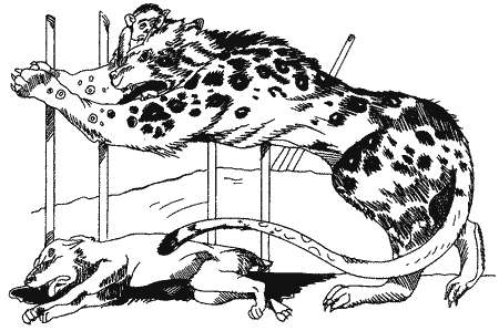 І Майклові довелось познайомитися з Джеком, позосталим ерделем, та взяти участь у щоденних репетиціях з леопардами. У цих великих плямистих котах він відразу впізнав спадкових ворогів, і ще перше, ніж його вкинули в клітку, напружився й наїжачив шерсть на хребті. То була тривожна мить для всіх учасників номера, коли в клітці опинився новий собака. Білявий молодик, що на афішах значився Раулем Каслемоном, а серед знайомих звався Релфом, уже був у клітці, й ердель з ним, а навколо клітки стояло кілька чоловіків з залізними прутами та довгими сталевими вилами в руках. Ту зброю вони держали напоготові, попростромлявши крізь грати в клітку, щоб страхати леопардів, які мусили виконувати номер, хоч їм не дуже кортіло. Майклова поява розсердила хижаків, і вони засичали, заметляли довгими хвостами та поприпадали до підлоги, ладнаючись на нього стрибнути. Однак приборкувач владно гримнув на них і підніс гарапника, а люди поза кліткою застережливо посунули вперед свою зброю. І леопарди, що вже на гіркому досвіді спізнали смак заліза, так і застигли, прищулені, хоча й далі сердито сичали та метляли хвостами. Майкл був не боягуз. Він не став ховатись за людину. Проте й мав досить розуму, щоб не кидатись на таких грізних звірів. Він тільки, наїжачений, сторожко перейшов через клітку, дивлячись просто на ворогів, тоді так само сторожко вернувся й зупинився поруч Джека, що приязно нюхав його, вітаючись. — Молодчина пес, — буркнув Релф дивно напруженим голосом. — Не боїться. Становище справді було напружене, і приборкувач поводився вельми обережно, унпкав різких рухів і держав на оці водночас і леопардів, і собак, і людей за кліткою. Він примусив лютих котів попідводитись і розійтися. А тоді наказав Джекові пройти між ними. Майкл рушив за ерделем самохіть. Ступав він, як і Джек, украй насторожено. Один з леопардів, Альфонсо, зненацька засичав на нього. Майкл не сахнувся від ворога, тільки наїжачився й вищирив зуби. В ту ж мить найближчий залізний прут загрозливо підсунувся до леопарда; той перевів очі на прут, тоді знов на Майкла — і не зачепив його. Перший день був найтяжчий. Потім леопарди звикли до Майкла, як колись звикли до Джека. Звісно, приязні між ними не могло бути, та ніхто з нею й не набивався. Майкл хутко зрозумів, що леопарди вороги й собак, і людей, а отже, люди й собаки повинні держатись укупі. Щодня він перебував у клітці годину чи дві, стежачи за репетицією; вони з Джеком не робили нічого, тільки стояли на чатах. Іноді, коли леопарди бували сумирніші, Релф навіть дозволяв обом псам лягти. Але в тривожніші дні він дбав за те, щоб вони весь час готові були стрибнути й заступити його собою від леопардів, як котрий здумає напасти на нього. Решту часу Майкл перебував у своєму просторому боксі разом з Джеком. Їх добре доглядали, як усіх тварин у Сідервайлді, часто мили, чесали, виводили бліх. Джек, як на пса-трилітка, був дуже статечний. Він або вже забув гратись, або ніколи не мав змоги навчитися. І вдача в нього була добродушна, мирна; він не ображався на дратливість, яку Майкл виявляв напочатку. І Майкл скоро перестав дратуватися й надалі вже тішився спокійним товаришуванням. Вони не намагалися виявити один одному свою приязнь, а просто цілими годинами лежали поряд, кожен задоволений присутністю другого. Часом Майкл чув здалеку, як Сара зчиняла гвалт або ж