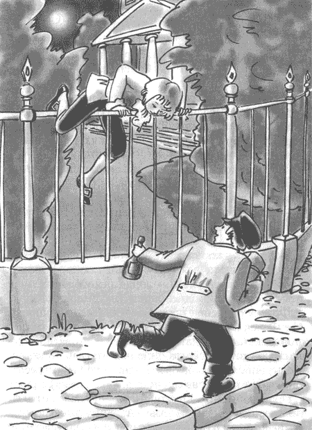 Перед кожною королівською прогулянкою двісті робітників і сто прибиральниць підмітали й наводили лад у саду: фарбували лавки, обприскували алеї одеколоном, з дерев і кущів витирали пил. За чистотою стежив цілий загін лікарів: усім відомо, які шкідливі для здоров’я бруд і пил. А поліція стежила, щоб у сад не пробралися хулігани, які мають звичку кидати камінці, штовхатися, битися і кричати.