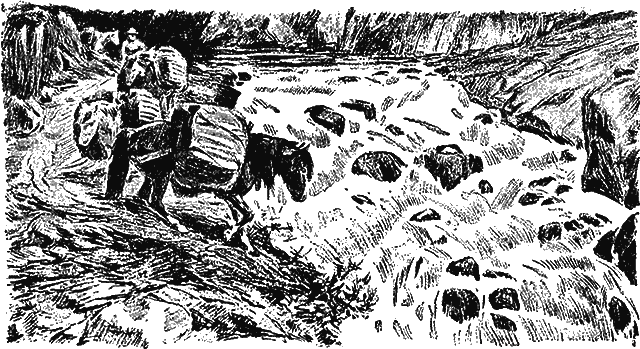 В течение многих недель Вьюга носила туристов по горным тропинкам от одной достопримечательности Исландии к другой. Это были неутомимые люди, их жадную любознательность невозможно было насытить. Они с утра садились в седла и забывали об усталости среди новых впечатлений, постоянно сменявших одно другое. Вьюгу хвалили все, кто ею пользовался. Чем дальше, тем она становилась послушнее, тем легче переходила на ровном пути от рыси к галопу. Она знала, что в конце пути всегда был отдых и корм, и никогда не ошибалась в направления. Неопытные туристы часто принимали за усадьбы глыбы лавы или утесы вдали. Вьюга никогда не ошибалась. Проводник постепенно привык доверять ей. Он советовал отпускать поводья, Вьюга шла избранным ею путем, и всегда вскоре слышался лай собак. Туристы ласкали Вьюгу и говорили с ней на непонятных языках, но Вьюга не любила этих людей — они ей надоели. К концу сезона вследствие плохого ухода у нее на спине появилась язва, и ее раньше времени вернули Скули. Язва зажила, Вьюга окрепла, но тоска по дому не покидала ее, и попрежнему ее выпускали лишь на ближайший луг стреноженной. Ясным августовским днем к Виндгейму пробирался профессор-немец. Это был немного разжиревший от кабинетной работы, но крепкий, выносливый и всегда веселый человек. Еще дома он составил себе подробный маршрут и не отступал он него, несмотря ни на какие препятствия. Много раз бывал он в Исландии, знал язык и умел пользоваться исландскими пони. Он путешествовал с проводником и несколькими вьючными пони, которых на опасных местах всегда пускали вперед. Когда профессор очутился в Виндгейме, он прежде всего заявил, что ему нужны свежие пони. Скули продал ему Вьюгу и предложил переночевать, так как погода была плохая. Профессор был в пути уже десять дней, и ему, и проводнику, и пони нужен был отдых; до следующей усадьбы было далеко. Но немец отклонил любезное предложение и отправился в путь согласно маршруту. Скули как гостеприимный хозяин проводил его через большое болото. Дождь все время лил как из ведра, и когда они достигли ближайшей усадьбы, все были насквозь мокры. Скули простился с гостем и тотчас же поехал обратно на своем легком привычном ко всяким трудностям жеребце. На следующий день профессор, придерживаясь маршрута, отправился к северу. По дороге он остановился на ночлег на лугу, который был хорошо знаком Вьюге. Это было на пути к летнему горному пастбищу, куда она три года подряд отправлялась жеребенком за матерью. И это воспоминание растравило ее тоску по дому. Наутро к каравану пристали несколько молодых пони, которые отбились от табуна, бродившего по летнему пастбищу. Запах дыма, исходивший от каравана, вероятно напоминал им о доме; некоторое время они шли вслед за караваном неохотно, по одному отставали и долго ржали на прощанье. И это молодое ржание хватало Вьюгу за сердце и усиливало тоску. На следующем привале проводник по обыкновению спутал пони и пустил их пастись, а сам залез в мешок из промасленной парусины и заснул. В пять часов утра проводник поднялся и, высунув голову из мешка, заметил, что нескольких пони недостает. Он сейчас же встал, поймал одного из оставшихся и отправился искать остальных. Через два часа он вернулся, найдя всех кроме Вьюги. Профессор бранился, но терять время на поиски пони было невозможно — программа прежд