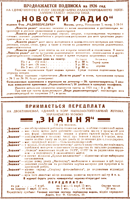 В погоне за разнообразием программ радиоконцертов, предназначенных для широкого пользования, последнее время в Европе и в Америке стали вводить «звериные концерты», т.-е. передавать по радио голоса животных из зоо-парков. На снимке — оранг-утанг и его сторож с радио в руках. Сторож старается заставить обезьяну произнести какое-нибудь приветствие «на своем языке». Оранг-утанг же, высунув от недоумения язык, тщетно старается понять, чего от него требуют.