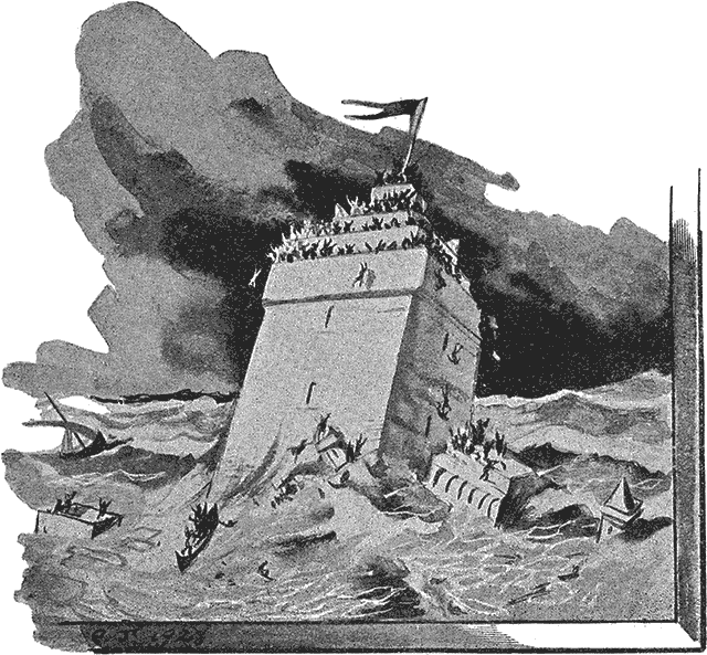 Над поверхностью бушующего океана высилась лишь крепость, как чудовищной величины корабль; потом и она стала опускаться в бездну, и на вершине ее качался лес рук…
