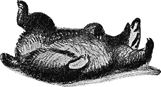 С наступлением ночи барсук укладывается на покой, раскинувшись на спине…