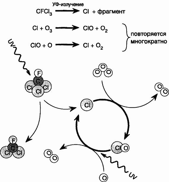 1. Различные виды хлор- и бромсодержащих соединений способны разрушать стратосферный озоновый слой. Это, например, метилбромид, почвенный инсектицид; четыреххлористый углерод, растворитель; галоны, используемые при тушении пожаров, и другие. Однако основные разрушители озонового слоя — ХФУ, семейство соединений, содержащих фтор, хлор и водород. ХФУ были объектом многих исследований, и сейчас именно на ограничении их использования сконцентрированы основные международные усилия. Поэтому в нашей истории мы тоже сосредотачиваемся именно на них.
