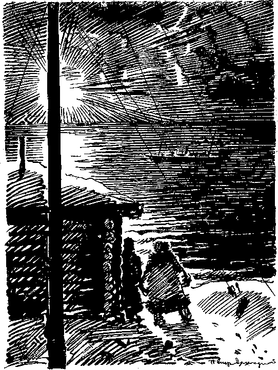 Я подошел к нему и заговорил. Мне показалось, что он с неприязнью проводил взглядом четыре тонкие иглы радио Исакогорки, когда они последним напоминанием о береге виднелись еще на горизонте.