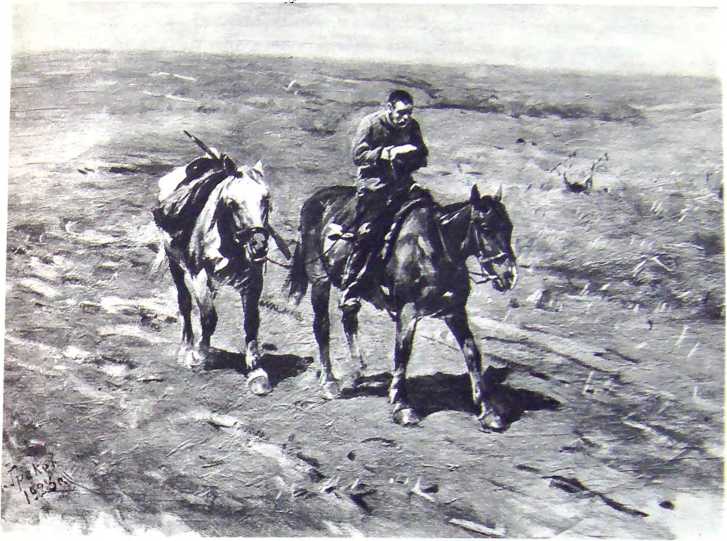 …Бронепоезд ушел на юг. В Киеве порядка было больше, чем в Брянске, потому что Киев был ближе к фронту. Как только вагон был отцеплен, комендант станции предложил его немедленно очистить. Командир и ординарец поехали в город. Подковы их коней звенели по раскаленным булыжникам мостовой. Солнце грело немилосердно. Питерские рабочие с интересом разглядывали невиданный южный город. Спустившись вдоль бульвара с горы, они выехали на центральную улицу, прямую и широкую, как Невский проспект. Они были сыты, кони их тоже, у них ничего не оставалось позади, даже… вещей, потому что все вещи, заботливо уложенные в школе в защитного цвета чемоданчики, они успели в дороге обменять на фураж. Хотя революционная дисциплина, которую командир усвоил на кавалерийских курсах, научила его бережному отношению к казенному имуществу, революционное чутье подсказало ему, что в данном положении кони нужнее революции, чем портянка, зарегистрированная в аттестате. С широкой улицы они свернули направо, долго ехали в гору и остановились возле дворца, в котором помещался штаб. Здесь, возле штаба, на выложенной брусчаткой площади, они провели четверо суток. В эти дни решалась судьба двух южных армий. В штабе мыслили полками, бригадами и дивизиями, и никому не было дела до командира с ординарцем, следующими в часть, затерявшуюся где-то между Киевом и Одессой. Когда командир стал приставать к какому-то чиновнику в командном отделе, к старому чиновнику с седыми офицерскими усами, в котором питерский рабочий безошибочно угадал затаившегося врага, делопроизводитель командного отдела предложил командиру зачислиться в комендантскую команду штаба. Такой финал нечеловечески трудного путешествия не устраивал, конечно, питерского рабочего, который мечтал о большом революционном подвиге. Командир ходил из комнаты в комнату, жаловался, просил, настаивал. Наконец адъютант командующего написал ему служебную записку. И через полчаса в руках командира очутился желанный пакет с надписью: КОМАНДИРУ Н-СКОЙ БРИГАДЫ ТОВ. КОТОВСКОМУ. Затем питерскому рабочему объяснили, что штаб этой бригады находится где-то на путях между Винницей и Одессой и что командир бригады очень нуждается в среднем кавалерийском командном составе, так как он формирует в данное время кавалерийский полк. Поэтому, подумав, чиновник, который объяснил все это, приписал на конверте: "Аллюр два креста". Командир превосходно знал, что значит этот "аллюр", и поэтому с широкой лестницы дворца он спустился почти бегом. Командир и ординарец были питерскими рабочими, и они знали, что такое крестьянская страна, охваченная пламенем гражданской войны. Четыреста километров от Киева до станции, на которой на путях стоял штаб бригады Котовского, они проехали за две недели. И командир больше всего мучился от сознания, что "аллюр два креста" требовал от него совершенно иных темпов. Они узнали звериные нравы бандитских деревень, хозяина, крадущегося ночью с обрезом к сеновалу, на котором ночуют красноармейцы, бессонные ночи, безумные атаки, когда два человека обращают в бегство несколько десятков бандитов, постоянную, круглосуточную игру лицом к лицу со смертью. Когда они добрались до бригады, начиналось общее наступление южной группы. Они попали как раз в момент, когда загорался бой и громадный комбриг в алых чакчирах и под