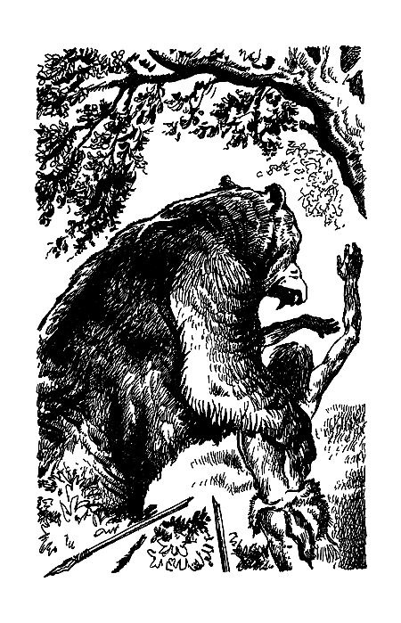 Один за другим мужчины и женщины отходили от костра и укладывались спать. И скоро у огня остались только старые, опытные охотники и вождь Ред. — Я хочу спросить, следите ли вы за тем, что делают сейчас медведи, — начал он. — Мы ходим за ними, Ред. Они уже разжирели и начинают искать место, где бы спрятаться на зиму. Скоро можно будет охотиться на них, — ответил Урд. Остальные согласно закивали. — Значит, нам пора готовиться, — сказал вождь. Он повернулся к колдуну: — Мужчины собираются на медведя. Надо, чтобы охота была удачной. Ты можешь это сделать? — Могу, — ответил колдун. — У меня все готово. Пусть те, кто пойдет на медведя, завтра соберутся здесь, у огня, со своими копьями и луками. — Будет так, как ты говоришь, Мар.