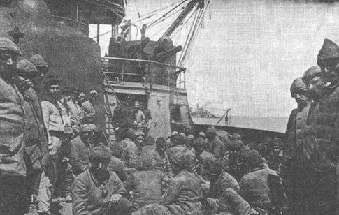 26 апреля 1915. На борт "Жорегибери"доставлены первые пленные турецкие солдаты