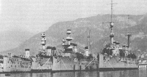 Слева направо транспорт "Вин-Лёнг", броненосцы "Жорегибери’’, "Патри"и крейсер "Жюль-Мишле". Тулон 1919 г.
