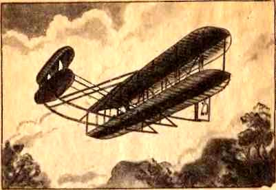Все эти парашюты, о которых мы говорили, были воздухоплавательными. Их употребляли только на аэростатах. Но вот 17 декабря 1903 года двум американцам, братьям Уильбуру и Орвиллу Райт, удалось оторваться от земли и подняться в воздух на аппарате тяжелее воздуха. Это был примитивный аэроплан, похожий на летающую этажерку, снабженный бензиновым мотором с воздушным винтом — пропеллером. Они поднялись всего на полтора метра от земли и продержались в воздухе лишь пятьдесят девять секунд, но это был уже настоящий триумф человека: наконец человек научился летать по-птичьему.