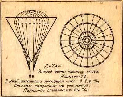 Грузовой парашют Г. Котельникова образца 1923 года. (По чертежу автора).