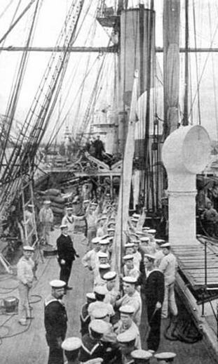 Раненный Фило Мак-Джиффин на палубе "Чжэньюаня" после боя