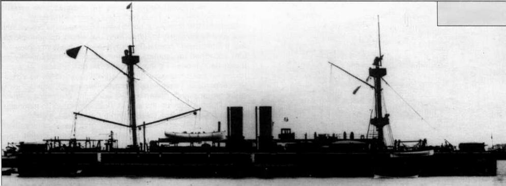 "Тинъэн" в Хиросиме вскоре после прибытия из Китая летом 1895 г. Броненосец уже отремонтирован, но отметки попаданий еще не закрашены - специально для посетителей