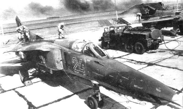 МиГ-27Д 58-го апиб перед полётом на бомбометание. На левом подфюзеляжном держателе БД3-УМК подвешена штурмовая авиабомба ОФАБ-250ШН.