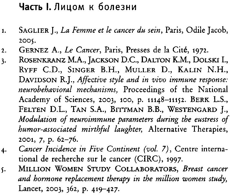 У Нелли стынут руки, колотится сердце, подкашиваются ноги. По спине пробегает ледяная дрожь. "У вас небольшая опухоль, — говорит ей врач. — Но вы не беспокойтесь, это прекрасно лечится… Хирургия, химиотерапия, облучение…” Неужели это все о ней? Она смотрит на рентгеновские снимки своей груди, вывешенные на световой экран у дальней стены кабинета. “Это, должно быть, какая-то ошибка”, — думает она. Нелли не понимает, что происходит. Как будто земля разверзлась у нее под ногами, и она внезапно провалилась в пропасть. Она не может ни о чем думать, все слова в голове перемешиваются, она чувствует, что задыхается… Диагноз “рак” — это всегда огромная травма. Неважно, успела женщина приготовиться за то время, пока делались маммографии, УЗИ и биопсии, или диагноз обрушивается на нее как гром с ясного неба, — это всегда ступор, непонимание и ужас. Мозг мгновенно запускает мощную тревожную реакцию: симпатическая нервная система стимулирует надпочечники, вырабатывается большое количество адреналина, ускоряется сердечный ритм, усиливается дыхание, периферические кровеносные сосуды перекрываются, кровь перераспределяется к мышцам, выработка слюны замедляется, температура повышается и вся энергия тела мобилизуется — так, будто мы готовимся к бегству или драке. Стресс максимален. Ведь на бессознательном уровне для каждого из нас “рак” означает “опасность”. И недаром: эта болезнь напоминает, что наша жизнь может оборваться. Она заставляет задуматься о том, что мы смертны. А ведь как раз об этом мы и стараемся забыть с самого первого дня своей жизни. “Это очень распространенная болезнь, и она встречается все чаще, — объясняет Нелли ее лечащий врач. — Во Франции каждый год диагностируют 42 000 новых случаев. В Европе, в Канаде, в США, в большинстве промышленно развитых стран — за исключением Японии — каждая десятая женщина рискует заболеть раком груди. Цифры тревожные, но, к счастью, благодаря ранней диагностике и прогрессу в области лечения около 80 % пациенток выживают![1]” Под таким углом болезнь выглядит уже не так пугающе. Но сколько бы Нелли ни уговаривала себя, самая мысль о том, что ее будут оперировать, возможно, удалят полностью молочную железу, а потом еще потребуются химиотерапия и облучение, — эта мысль ее ужасает. Она делает глубокий вдох, и напряжение, охватившее ее тело, чуть-чуть ослабевает. “Одно несомненно, — говорит она себе, — от рака можно умереть, но пока что я жива”. Жить! Это именно то, что она должна делать. Не поддаваться мрачным мыслям, не воображать себе самое худшее — потому что оно, возможно, никогда и не произойдет. Жить и в полной мере переживать своеобразный “опыт” болезни. Это, возможно, лучший способ понять и прочувствовать, что такое на самом деле быть живой. Более, чем когда-либо, ей нужно наполнить жизнью свое существование. Это, несомненно, лучшее средство не оставить места опухоли, которая тоже подчиняется логике жизни.Чересчур живые клетки