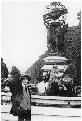 Три редкие фотографии 1910 - 1911 годов, запечатлевшие Шагала во время его первого пребывания в Париже. На первых двух фотографиях - внешний вид и интерьер "Улья", коллективной мастерской художников- авангардистов; Шагал рядом с фонтаном Обсерватории.