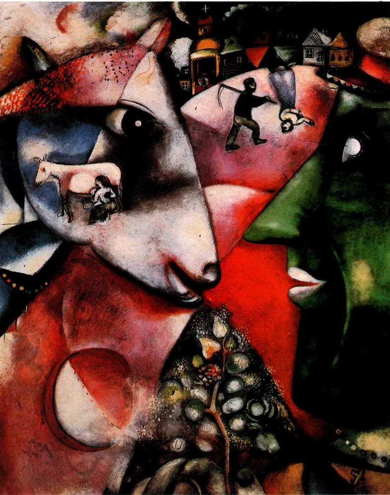"Может быть, Европа меня полюбит, — писал Шагал, — а вслед за ней и моя Россия". Вернувшись во Францию, он вынужден был возобновить прерванные искания. Последовал краткий период замешательства. Художник чувствовал, что изменился по сравнению с тем творческим этапом, когда создавалась картина "Я и деревня". Преобразилось его "я", и деревни больше не было. Да и Париж был уже не тот. За эйфорией победы в Первой мировой войне и общим желанием не оглядываться на тяжелые военные годы стали просматриваться острые и сложные социальные конфликты. С ностальгической грустью вспоминал Шагал годы, когда его воображение питалось открытиями кубизма. Хотя кубисты не скрывали своего недоверчивого отношения к полотнам Шагала, именно Делоне и его соратники побудили его и дальше развивать взрывной, эпатажный стиль. Шагал был художником, отличающимся естественной свежестью образного восприятия.