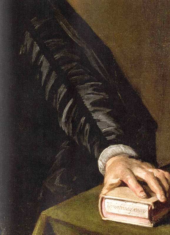 Франс Халс — выдающийся нидерландский портретист Позднего Ренессанса. Художник родился в семье ткача, которая жила в Антверпене, но вскоре перебралась в Харлем. В конце XVI — начале XVII века этот город переживал период экономического подъема, связанного с большим притоком протестантов с юга Нидерландов. Среди них было много купцов, ткачей, кораблестроителей. Горожане проявляли большой интерес к науке и искусству. Большим спросом среди богатых людей пользовались портреты. После создания в 1616 картины «Банкет офицеров стрелковой роты Святого Георгия» (музей Ф. Халса, Харлем) Халс стал известным живописцем. В 1620-е его мастерство достигло расцвета. В эти годы художник отдавал предпочтение портретам, написав целую галерею работ, показывающих все слои нидерландского общества — от социальных низов, воплощающих жизненную энергию народа, до городской верхушки, которая представляла утверждающуюся протестантско-бюргерскую культуру. На данном холсте изображен знатный господин преклонных лет. Его черный строгий костюм с белым кружевным воротником указывает на то, что он протестант. Правая рука модели опирается на подлокотник кресла, левая покоится на Библии. Из-за динамичных мазков, которыми рисовал Халс, некоторые исследователи рассматривают его как предшественника импрессионистов.