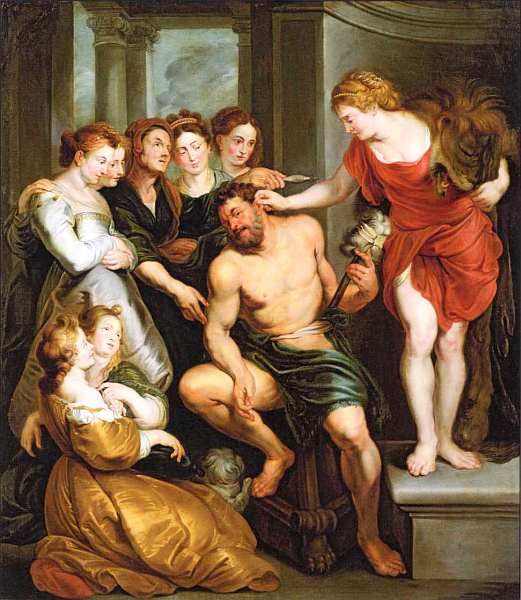 Теодор ван Сулден родился в небольшом городе Хертогенбосе в семье ювелира. В пятнадцатилетием возрасте он отправился в Антверпен, где поступил в ученики к мастеру Аврааму Блунберху. Долгое время Теодора считали учеником Рубенса, вероятно, живописец мог сотрудничать с ним, обычно приглашавшим для выполнения больших заказов помощников. Однако, по мнению ряда современных исследователей, влияние Рубенса на творчество Теодора ван Сулдена явно преувеличено. Время, в которое жил мастер, было переломным для Фландрии. Маленькая страна переживала испанскую оккупацию, сопровождавшуюся острыми внутренними противоречиями между католиками и протестантами. Считается, что Ван Сулден умело лавировал между различными противоборствующими сторонами. Одним из направлений в искусстве, пользовавшимся спросом как у католиков, так и у протестантов, были аллегорические картины на сюжеты античной мифологии. На представленном полотне запечатлен известный эпизод из жизни Геракла, когда он оказался в услужении у царицы Омфалы. Поддавшись ее женскому очарованию, герой забыл о своей воинственной природе — он начал прясть и отдал свое знаменитое одеяние — шкуру немейского льва — правительнице. На картине гордая властительница тянет силача за ухо, как нашкодившего мальчишку.Искусство XVIII века