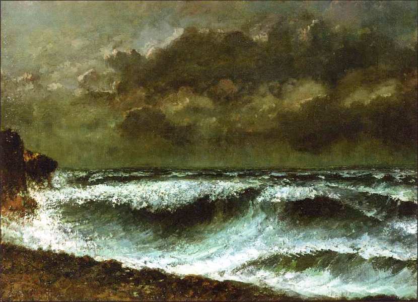 Французский живописец Жан Дезире Гюстав Курбе — один из основателей реализма. Он не получил никакого специального художественного образования, предпочитая заниматься в частных студиях. С самого начала своей карьеры Курбе следовал реалистическим принципам, считая целью искусства максимальную передачу действительности. Для совершенствования мастерства в качестве модели он выбрал себя, нарисовав большое количество автопортретов. Однако официальные круги не спешили признать художника-реалиста. Творчество Курбе раскололо художественную среду Франции на его ярых противников и не менее ярых приверженцев. Салон отказывался экспонировать работы живописца, а на всемирных выставках ему приходилось показывать свои картины в отдельных помещениях. Однако натурализм полотен мастера, который иногда шокировал современников, тем не менее, представляет не просто безликое, фотографически точное воспроизведение реальности. В нем всегда выражены настроение и позиция автора. На данном полотне изображение бушующего моря точно передает душевный кризис художника, происходивший в эти годы. Участие в Парижской коммуне и свержении Вандомской колонны (1871) дорого обошлись Курбе — он отсидел полгода в тюрьме и был оштрафован на крупную сумму, что фактически его разорило.