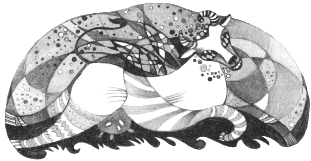 Они играли в перегонялки, и муравей всегда Корову перегонял, забираясь на самый кончик её носа, и торчал вперед, а Корова вся торчала назад, и как бы быстро она ни неслась, она не могла перегнать кончик своего носа.