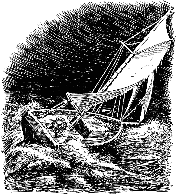 Парус глухо затрепыхал и выпуклым полушаром выдался вперед, выпрямляясь по мере того, как его задергивали кверху. Судно закачалось, накренилось и, рванувшись вперед, врезалось в волны.