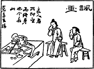 Китайцы ни за что не поверят, если доктор будет щупать пульс только на одной руке или не пропишет внутреннего лекарства, хотя бы больной нуждался только в компрессах. По их мнению, только то, что входит в человека, может его излечить. Пусть наука движется вперед гигантскими скачками, пусть ученые открывают новые методы, — старому Китаю до этого нет никакого дела, он продолжает лечиться так, как лечился пятьсот лет тому назад. — Я часто просиживал целое утро в крытом дворе кантонского госпиталя, около бассейна, окруженного карликовыми деревьями, где происходил прием больных, — рассказывает французский писатель Ролан Доржелес. — Неизвестно почему, меня там принимали за врача-инспектора, и часто туземные узкоглазые доктора, не знавшие ни слова по-французски, старались взглядами узнать мое мнение. Они оставались очень довольны, когда я одобрительно кивал головой. Больной обычно садился перед ними по другую сторону стола, положив на подушки обе руки, чтобы врачу было удобнее щупать сразу пульс на обеих. Этим ограничивался весь осмотр. Ни вопросов, ни выстукивания, ни выслушивания. Доктор по одному пульсу определял болезнь и, вооружившись кисточкой, вырисовывал рецепт, неизменно прописывая настойки из лекарственных трав и порошок толченой кости… Старухе с бельмом на глазу он, как и другим, назначил отвар какого-то корня, с тою только разницей, что половину она выпьет, а другой половиной обмоет глаза. В глубине залы, среди кучи ящиков, больных поджидает аптекарь с очками па носу и голым животом. Я никогда не мог точно узнать содержимого этих ящиков. Французский переводчик недостаточно хорошо знал китайский язык, а китаец плохо понимал по-французски. Я видел листья, корни, порошок из толченых костей для малокровных, ласточкины гнезда для чахоточных. В углу висела огромная челюсть тигра, предназначенная, кажется, для опасного больного. Здоровые поправляются, то же иногда случается и с больными. Среди этих стонущих на подстилках несчастных часто случается встретить китайца, служащего на телефонной станции или пишущего на машинке. Но это не мешает ему лечиться таким же допотопным способом, как и всем остальным.Китайские похороны.