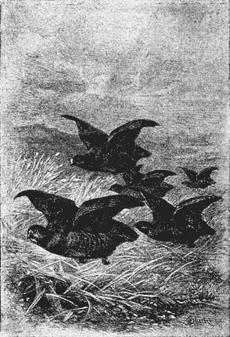 Куропатка серая. В конце июня в средних и южных губерниях после трехнедельного насиживания — вывод молодых, число которых достигает иногда двадцати и более штук; дней через пять молодежь начинает уже порхать. В местах вывода выводки держатся около месяца, затем начинают посещать хлебные поля (если гнездо не в хлебах) и вообще отходят на кормежку довольно далеко от родных мест. В июле выводки уже живут и кормятся в хлебах. В августе молодежь уже вся на крыле; выводки по мере уборки хлебов переселяются на пары, держатся по жнивам, заросшим кустарником оврагам и межам. Охота разрешается с 1 августа в северной, с 15 — в средней и южной полосах; охота в полосе зимовок — воспрещена.