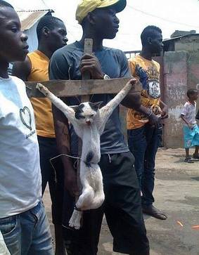Существовало, да и по сей день существует много разного рода магических актов, когда домашнее животное приносят в жертву. Но обычно жертва в виде быка или барана так не впечатляет обывателя, как жертвоприношение кошки или собаки. Да угодна ли Богу таковая жертва? какому богу? в описаниях тех жертвоприношений всегда присутствуют мучения животных. Их приносят в жертву особым образом — умучивая. Это касается и кошек и собак.