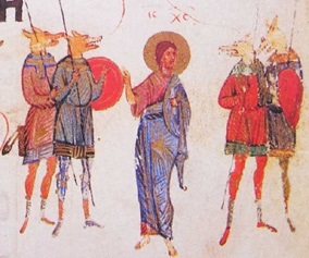 Иисус Христос среди псеглавцев. Киевская псалтирь. Пергамент. 229 листов. 1397 год.
