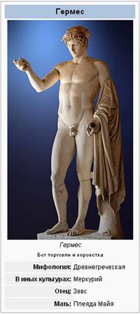 Прежде чем продолжить, давайте немножко проясним, что представляет из себя Гермес как сущность. В первых строках энциклопедий мы о нём узнаем как о боге торговли, прибыли, ловкости, плутовства, обмана, воровства и красноречия дающего богатство и доход в торговле. Если короче — получится так — бог торговли и воровства. Так и пишут: Этих сведений тем, кто выстраивает свою жизнь на ловком извлечении прибыли путем обмана, воровства и плутовского красноречия, обычно достаточно, для того чтобы избрать Гермеса своим покровителем. Хотя цинизм профессии торговца (не обманешь — не продашь) или эффективного менеджера уже предполагает отказ от некоторых моральных принципов, люди эти вовсе не являются воинствующими отмороженными атеистами — таковых настоящих буйных мало, это просто люди, и подсознательно чувствуют неловкость жизненного момента, который привел их за прилавок («прилавок» здесь понятие условное), а не в ординаторскую, скажем, или за штурвал самолета, что рождает у них дисгармонию, ведущую иногда к расслоению или распаду личности и далее прямым ходом в уютный кабинет шарлатана психиатра. Но дискомфорт этот нельзя устранить приемом тонн антипсихотических препаратов, погасить типа водкой и прочими излишествами нехорошими — душу этими средствами излечить невозможно: ржа ест железо, а лжа — душу, поэтому ранее среди приличных торговцев было так много меценатов. Построив детскую больницу, к примеру, купцы-христиане компенсировали неизбежное в их профессии паразитирование на чужом труде тем, что сохраняли жизнь и здоровье тысячам детишек своих покупателей. В этом случае торговец просто аккумулировал и перераспределял средства, вырученные от других, на дела, достойные человека. И сам при этом оставался достойным человеком. Он, конечно, оставлял себе кое-что, это понятно, — роскошь всем нравится. Но кто из нас не без греха? Живи и дай жить другим. Это двигало человеческий прогресс, развивало науку и именно это способствовало появлению замечательных произведений в музыке, литературе и изобразительном искусстве от античных времен до наших дней, которые мы потребляем как пищу духовную.