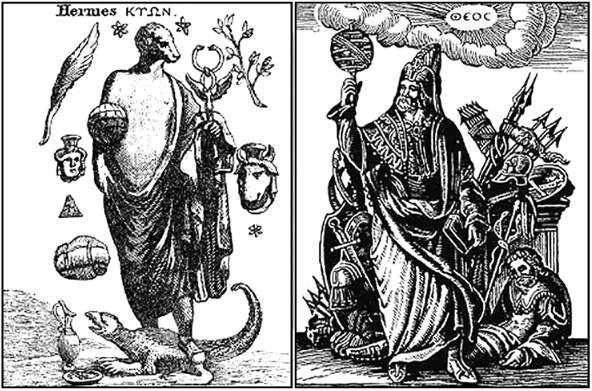 Только на этом изображении не просто Гермес, а Гермес Трисмегист. Гермес Триждывеличайший. И как видим, Тифона изображали не только в виде Ктулху.