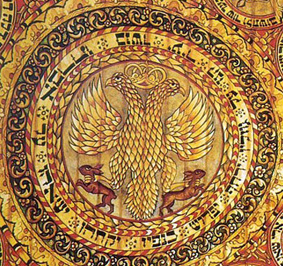 Склоняются к тому, что корни орла шумерские и отчасти египетские. В Европу орёл мог попасть только двумя путями: вместе с еврейскими переселенцами и со щитами крестоносцев в XIII веке. Еврейская версия не слишком серьезна, у евреев встречались такие изображения в синагогах, но не были очень распространены, да и с чего бы это христианам впрямую перенимать иудейскую символику? Хотя и таковых примеров масса. Некоторых это удивляет, почему-то. Поэтому посмотрим, что евреи понимают под этим символом. "Двуглавый орел в иудаизме — символ орла Мошиаха, где одна голова — Лев, другая — Единорог. Единорог — потерянное колено, которое будет найдено с приходом Мошиаха, и произойдет объединение иудеев". Это одно объяснение.