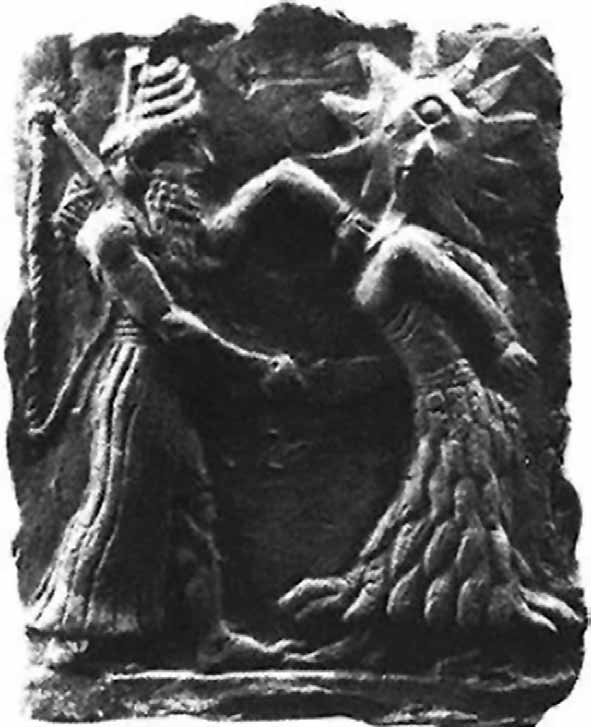 Менее всего анзу (Имдугуд, Им-Дугуд" = "Буря-ветер") на рельефе с клеткой похож на гигантскую птицу молниибури по легенде укравшего у Энлиля атрибуты власти: скипетр, божественную рогатую корону-шлем и "Таблицы судьбы", древний девайс вроде пульта управления, дающий власть над богами и людьми. Без инсигний, этих реальных атрибутов власти, и доступа к базе данных Энлиль был беспомощен. Контроль был утерян до той поры, пока Нингирсу "верхом на ветре" не вступил в тяжкую воздушную битву с анзу и не вернул похищенное, укротив птицу третьим ударом божественной стрелы. Мифы рассказывают, что после сего подвига Нингирсу стал обладателем скипетра "Шарур" (ШаР.УР — "верховный охотник"), оружием, "чей блеск был ужасен", — и если учесть то, что это оружие (по мифу) имело способность говорить со своим хозяином и совершать иные интеллектуальные действия, вроде воздушной разведки в тылу врага, действуя скрытно, как "беспилотник-невидимка", — возможно, речь идет именно о том предмете, что он держит в левой руке, о том, что называют птицей. С помощью Шарура Нингирсу вызывал потопы, одержал победу над асагом, существом, которое греки затем называли Тифоном, египтяне апопом, а евреи Левиафаном. Согласно представлением шумер Нингирсу (как и Баалу) соответствовало на небе созвездие Ориона. В мифах сообщается, что Нинурта имел обыкновение фиксировать наиболее важную информацию (в частности, свои МЕ) в камне. И есть любопытные рассуждения в эпосе "о Нинурте и асаге" о том, какой камень для этих целей наиболее подходит. В битве некоторые камни, вроде базальта и гранита, препятствовали победе, сильно мешали и были на стороне асага. Другие способствовали. Нинурта был жутко раздосадован. Одни камни Нинурта затем проклял, другие возвысил. Эти строчки эпоса кажутся, на первый взгляд, лишними в контексте повествования и несколько странными, поскольку Нинурта перемещался по воздуху и камни ему вроде бы не должны были мешать. С другой стороны, припомним многочисленные мегалитические гранитные надолбы, напоминающие гигантские противотанковые "ежи", которые рядами установлены по всей Европе, кромлехи, сейды Русского севера. Догадки о том, что разветвленная сеть каменных сооружений (без видимой функциональности) являлась древней системой "противовоздушной обороны" (ловушками), сами собой напрашиваются, исходя из слов Нинурты. И возвели их явно не "шумерские боги". В тексте на статуе правителя Гудеа из Лагаша, которая датируется концом XXII в. до Р.Х., есть такие слова — "в навершие Шарура-птицу превратил". Шарур недвусмысленно назван птицей. Речь идет об украшении храма в честь Нингирсу. Там же: "когда дом Нингирсу (храм) он построил, (то) Нингирсу, его любимый хозяин, от Моря верхнего до Моря Нижнего все пути ему открыл".