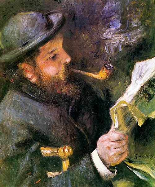«Читающий Клод Моне» (1872, Париж, музей Мармоттан); по-видимому, именно из брошенной Моне фразы (а он собирался назвать так все свои картины) вошло в обиход слово «impression» — «впечатление», которое потом как насмешка повторялось критиками того времени и положило начало термину «импрессионизм».