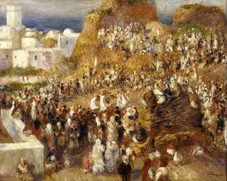 В 1881 году Ренуар под впечатлением экзотических полотен Делакруа отправился на месяц в Северную Африку. В ту пору он стал писать картины в интенсивных тонах, как, например, этот «Арабский праздник» (или «Мечеть») (1881, Париж, музей Орсе); здесь преобладал заново открытый им белый цвет, ставший ключевым для всей композиции.