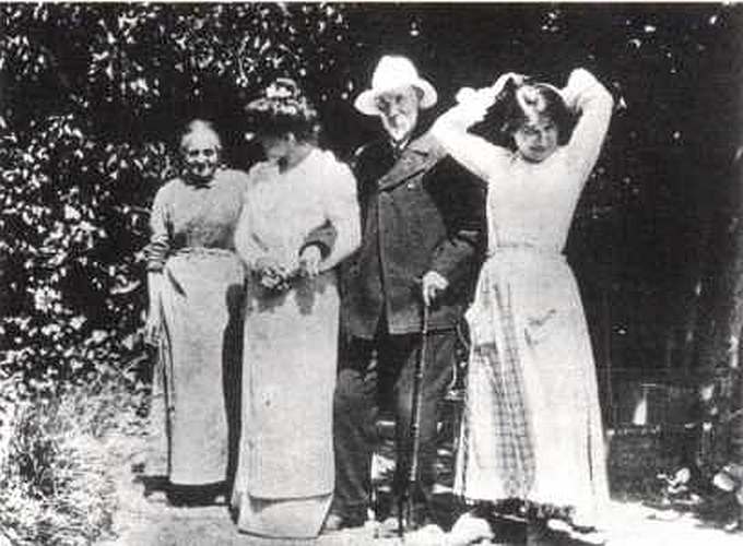 Ренуар с семьей в Кане, в Коллетах. Под руку с ним — жена Алин; с поднятыми руками — его модель Габриэль.