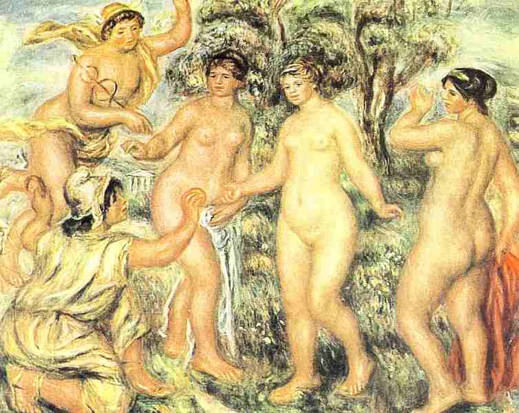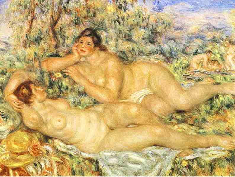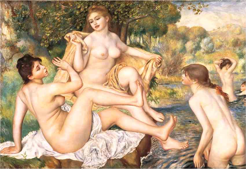 «Я люблю живопись жирную, гладкую, маслянистую, люблю трогать картину, щупать ее пальцами», — заявляет Ренуар в начале века. «Купальщицы» (19181919, Париж, музей Орсе) — еще одно тому свидетельство.