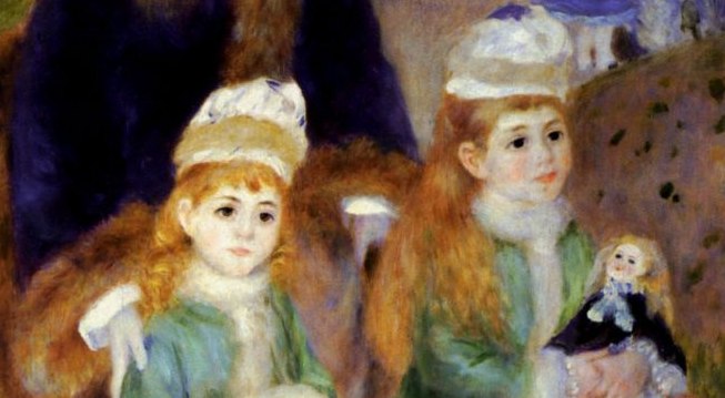 Еще один пример детского портрета: две девочки с куклой с картины «Женщина с дочерьми на прогулке» (фрагмент, 1875).