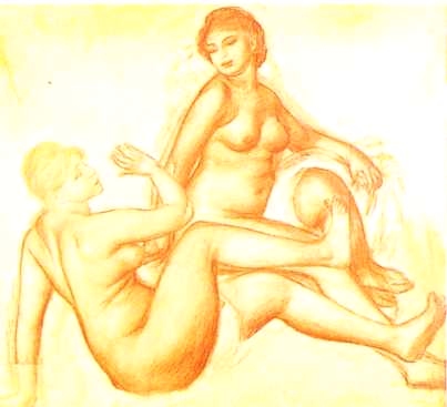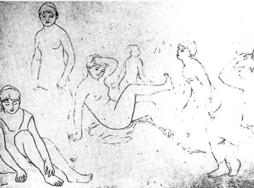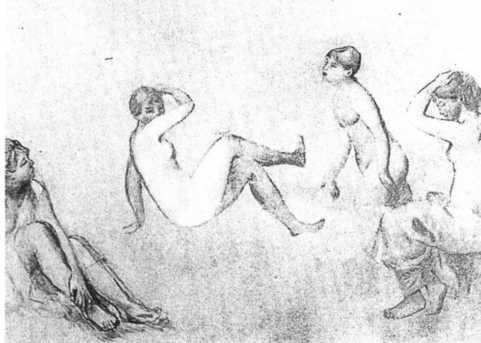 Женское тело постоянный предмет живописи Ренуара. Чтобы написать «Больших купальщиц», он сделал множество рисунков.
