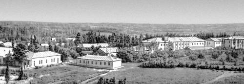 Дешифрирование. Аэроснимок равнинного района: слева — с нормальным фотоизображением местности, справа — с ослабленным , по фону которого в условных знаках показаны: леса (зернистый рисунок), пашни на разной стадии обработки (гладкий и полосчатый рисунок), дом отдыха со строениями и садами (точечный рисунок) и др.