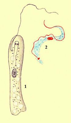 Пряди'льная маши'на, вырабатывает пряжу из ровницы или ленты ; завершает обработку волокнистого материала в прядильном производстве . По виду используемого волокна различают П. м. для прядения хлопка, лубяных волокон, шерсти, шёлковых отходов. Пряжу из химических волокон получают на машинах для натуральных волокон. Основной для прядения всех видов волокон является кольцевая П. м. непрерывного действия, на которой выполняются утонение полуфабриката и образование ленточки, скручивание её в пряжу и наматывание последней в паковку. На рис. 1 показана схема двусторонней кольцевой П. м. для хлопка. Ровница, сматываемая с катушки, поступает в питающую пару вытяжного прибора . Выходящая из него ленточка скручивается, получаемая пряжа направляется в нитепроводник, проходит через бегунок, надеваемый на кольцо, и затем наматывается па шпулю или патрон, надетые на веретено . Пряжа вырабатывается с коэффициентом крутки 50—140; частота вращения веретён достигает 10—12 тыс. об /мин, диаметр колец 30—60 мм. Зарубежные машины имеют частоту вращения веретён до 15—17 тыс. об /мин. Диаметр колец 30—70 мм. Кольцевые П. м. в основном достигли максимальных показателей по производительности и качеству пряжи. Созданы П. м. безверетённого прядения, на которых осуществляются дискретизация (разделение на отдельные волокна) питающего продукта, транспортирование дискретного потока волокон, сложение или сгущение их для формирования непрерывного продукта, скручивание в пряжу и её наматывание. Из этих машин наибольшее распространение в промышленности получила пневмомеханическая П. м., разработанная в конце 60-х гг. сов. и чехосл. специалистами. На рис. 2 показана схема пневмо-механического П. м. для хлопчато-бумажного волокна. Лента (или ровница) направляется питающим цилиндром на дискретизирующий (или расчёсывающий) валик, где она разъединяется на отдельные волокна или их группы. Получаемый дискретный поток волокон подаётся воздухом по каналу в быстровращающуюся камеру (30—60 тыс. об/мин ). В жёлобе камеры образуется волокнистая ленточка в результате укладки кольцами потока волокон, т. е. происходит циклическое сложение, дающее выравнивание линейной плотности дискретного потока в 15—20 раз. Вращение камеры обусловливает наложение крутки на участок сформировавшейся ленточки, перемещающийся от внутренней стенки камеры к отверстию направляющей трубки. Готовая пряжа отводится из камеры выпускными валиками и наматывается на бобину. Пряжа вырабатывается с коэффициентом крутки 160—190. По сравнению с кольцевой пневмомеханическая П. м. имеет в 2—3 раза большую производительность при выработке пряжи одинаковой толщины, масса выходных паковок достигает 1,5 кг (паковка аналогичной пряжи с кольцевой П. м. весит 120—140 г), что позволяет в большинстве случаев использовать пряжу непосредственно в ткацком производстве. Для прядения гребенной пряжи из шерсти и химических волокон созданы П. м. с использованием самокруточного прядения. Развитие П. м. безверетённого прядения направлено на повышение скорости прядения, усовершенствование дискретизирующих устройств, снижение крутки пряжи при одновременном повышении её прочности, на расширение диапазона толщины вырабатываемой пряжи и автоматизацию съёма готовых бобин. Об истории развития П. м. см. в ст. Прядильное производство .Лит.: 