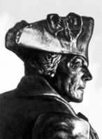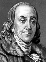 Фра'нклин (Franklin) Бенджамин (Вениамин) (17.1.1706, Бостон, – 17.4.1790, Филадельфия), американский просветитель, государственный деятель, учёный. Родился в семье небогатого ремесленника. С 10 лет работал сначала в мастерской отца, затем в типографии старшего брата. В 1723 переехал в Филадельфию. В 1724–26 жил в Лондоне. В 1727 основал в Филадельфии собственную типографию. Отдавая свободное время самообразованию, Ф. стал одним из образованнейших людей своего времени. В 1729–48 издавал «Пенсильванскую газету» («Pennsylvania Gazette»), в 1732–58 – ежегодник «Альманах бедного Ричарда». Основал в Филадельфии первую в английских колониях публичную библиотеку (1731), Американское философское общество (1743), Филадельфийскую академию (1751), ставшую основой Пенсильванского университета. В 1737–1753 был почтмейстером Пенсильвании, в 1753–74 – почтмейстером всех сев.-амер. колоний. Ф. – один из инициаторов созыва первого конгресса представителей колоний в Олбани (1754), которому предложил план объединения колоний. В 1757–75 (кроме 1762–65) представлял сев.-амер. колонии в Лондоне. После начала Войны за независимость в Сев. Америке 1775–83 вернулся на родину. Был избран во 2-й Континентальный конгресс, участвовал в подготовке Декларации независимости 1776 . В 1776–85 посланник в Париже. Способствовал укреплению международного положения США. При его содействии и участии были заключены Американо-французский договор 1778 о союзе и Версальский мирный договор 1783 , по которому Великобритания признала независимость США. В 1785 избран президентом Законодательного собрания штата Пенсильвания. Участвовал в работе Конституционного конвента по выработке Конституции США 1787. В основе политических воззрений Ф. лежит концепция естественных и неотъемлемых прав человека, к которым он относил жизнь, свободу, собственность. Полагая, что основой государства является общественный договор, Ф. утверждал право народа (в случае нарушения правительством этого договора) на восстание. Первоначально Ф. выступал за усиление самостоятельности колоний в рамках Британской империи, затем, с развитием революционного движения, – за отделение колоний от метрополии и провозглашение политической независимости. В период выработки конституции Ф. отстаивал принцип федерации всех штатов с сохранением широкого местного самоуправления, выступал против усиления исполнительной власти, за установление всеобщего избирательного права, не ограниченного имущественным цензом. Ф. был решительным противником рабства. В области политэкономии Ф. выступил против господствовавшей меркантилистской теории, отстаивал экономические воззрения физиократов . За полвека до А. Смита Ф. сформулировал трудовую теорию стоимости, став, по словам К. Маркса, «одним из первых экономистов, который... разглядел природу стоимости...» (Маркс К. и Энгельс Ф., Соч., 2 изд., т. 23, с. 60, прим.). По своим философским воззрениям Ф. примыкал к деизму . Ортодоксальной церковной догме он противопоставлял идею «естественной религии», в которой роль бога сводилась к акту сотворения мира; Ф. рассматривал движение как имманентное свойство материи. Этические воззрения Ф. основывались на представлении о естественном, утилитарном характере нравственности, которая должна быть освобождена от религиозной санкции. Внимание Ф. как учёного привлекали самые различные явления природы. Он 