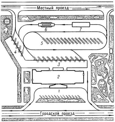 Автоста'нция пассажи'рская, предназначена для обслуживания пассажиров междугородных и пригородных автобусных сообщений. А. п. строятся на транзитных и конечных остановочных пунктах в небольших городах и населённых местах и входят в комплекс сооружений на автомобильных дорогах. А. п. состоит из пассажирского здания с перроном посадки и высадки пассажиров, проезда у перрона, изолированного от автомобильной дороги, площадки для стоянки автобусов и автомобилей. В здании размещаются пассажирский зал с билетными кассами, кафе, комната диспетчера, санузлы, а также, в зависимости от величины А. п., помещение для пассажиров с детьми, камера хранения ручной клади, шофёрская. Расчётными показателями А. п. являются суточное отправление пассажиров и часовое отправление автобусов. Предел вместимости А. п. — 50 человек. Ю. А. Гольденберг. (обратно)Автостерильность
