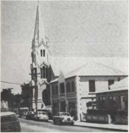 Сент-Джордж — одно из старейших англоговорящих поселений в западном полушарии. Его история тесно связана с миграцией из Англии. Первые поселенцы, возводя город, строили грубые хижины, покрывая крыши листьями карликовых пальм. Они сажали сады и протаптывали между домов первые тропинки, превратившиеся со временем в лабиринт узких улиц и переулков, придающих сейчас городу неповторимый колорит. Сент-Джордж строился без всякого плана да и в дальнейшем реконструкции и перепланировке не подвергался. Поэтому-то в нем сохранился путаный рисунок улиц и облик европейского средневековья. Приезжий, даже англичанин, удивляется странным названиям улиц города: улица Старой Девы, аллея Печатника, переулок Цырюльника, Удобная улица, аллея Большой Берцовой Кости и так далее. Все они пришли из прошлого… В городе обычно царит тишина, не прерываемая даже гудками автомашин (подача звуковых сигналов здесь запрещена). Изредка она нарушается лишь гулом взлетающих и идущих на посадку самолетов. Здесь, напротив просторной гавани города, лежит остров Сент-Дейвид, часть которого является арендной территорией Соединенных Штатов и занята под военно-воздушную базу и гражданский аэродром (территория была арендована в 1941 году сроком на 99 лет). В город можно попасть через Йорк-стрит — главную торговую и деловую артерию. В восточной части Йорк-стрит находится церковь святого Петра. Это старейшая в западном полушарии англиканская церковь. В ней члены религиозного общества «Друзья святого Петра» проводят, как мне показалось специально для приезжих, в некоем роде «ознакомительные проповеди», ловко сочетая при этом догмы англиканской веры с туристской рекламой. Они распространяют листовки в местах наибольшего скопления приезжих — в Историческом музее, в Пороховой пещере, на Гавернмент-хилл (правительственном холме) — там, где расположено здание бывшего парламента колонии. В листовках дается описание красот этих мест, а плюс к этому — реклама церкви, расписание проповедей, их тематика и тому подобное. Дошедшее до наших дней мощное здание собора святого Петра было построено в 1713 году, а в 1814 году к нему была пристроена колокольня. Производились и еще достройки, последняя из которых была сделана в начале XX века. Сейчас церковь реставрирована, причем почти полностью восстановлены все элементы архитектур XVIII, XIX и XX веков. Целиком воссоздана деревянная отделка внутренних помещений. Не претерпел изменений лишь алтарь — великолепное произведение искусства. Пройдя немного дальше, невольно задерживаешься на Кингс-сквер. Здесь, возле городского парка, чуть позади, на возвышении находится Стейт-хаус — здание постройки 1619 года, которое считается старейшим каменным зданием на островах. Недалеко от Кингс-сквер находится Сомерс-гарден — живописный парк. В нем приятно укрыться от палящих лучей бермудского солнца, ощутить тень и легкий ветерок, дующий с моря. Неподалеку от парка Сомерс-гарден находится здание, в котором размещается местное историческое общество. В здании XVII столетия хранятся редкие предметы быта Бермуд еще более внушительного возраста. Еще одной исторической достопримечательностью Сент-Джорджа является Пороховая пещера. Это — кирпичный каземат, устроенный в толще земляного холма. Арсенал представляет собой просторные хранилища для пороховых