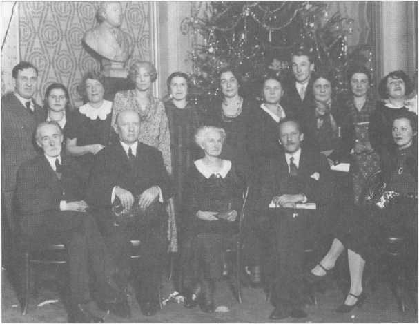 Н.Н.Кнорринг, И.И.Иозефзон, Л.В.Шейнис, М.А.Осоргин; стоят: М.П.Котляревская (4-я слева), М.А. Осоргина (2-я справа), ее мать Э.Н.Бакунина (3-я справа), супруги Трушины (4-й и 5-я справа). Конец 1930-х годов. Архив Софиевых-Кноррингов