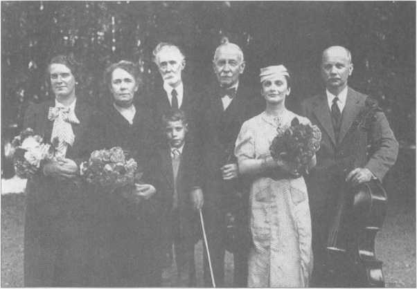 После концерта в Русском доме (слева направо): В.К.Мещерская, Т.Ф.Мантейфель, Н.Н.Кнорринг, Игорь Софиев, ГИ.Шевич (скрипка), И.А.Энери, Б.В.Кологривов. С.-Женевьев-де-Буа. 1 июля 1938. Архив Софиевых-Кноррингов. Публикуется впервые