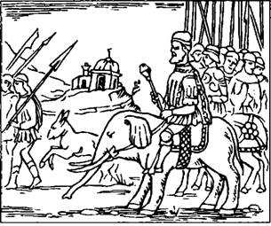 В благодарность четвероногому лопоухому воинству царь Антиох повелел воздвигнуть на поле сражения памятник с изображением слона. …Правда, заслуживающие доверия свидетели писали, что Антиох стыдился этого своего успеха. «Можно ли гордиться победой, — говорил он, — если в этом заслуга одних животных». Римляне впервые и с немалым для себя уроном встретились с боевыми слонами во время битвы при Гераклее и Аускуле в войне с Пирром, честолюбивым царем Эпира. Они даже не знали, как называется это колоссальное животное. Поскольку все сущее в этом мире должно иметь название, то его получили и слоны. Римляне прозвали слона «луканским быком» по наименованию области, где впервые увидели слона. Неудачное использование боевых слонов могло стать причиной поражения. После неудачного похода в Италию Пирр, царь Эпирский, возвратился в Грецию, где продолжал свои военные авантюры. Например, при помощи слонов он решил овладеть городом Аргос, что на Пелопоннесе. Вначале военные действия для Пирра проходили удачно. Глубоко ночью, обманув бдительность стражи, изменник открыл эпирцам городские ворота. Пирр хотел запугать горожан слонами и поэтому пустил их в город первыми. К несчастью, ворота оказались невысокими, и башни, установленные на слонах, мешали им пройти. Пришлось снимать башни, а затем снова устанавливать. Из-за этой непредвиденной задержки эпирцы упустили благоприятный момент, и разбуженный гарнизон и жители города успели взяться за оружие. К тому же на узких, кривых улочках слоны ничего не могли сделать с защитниками, которые, притаившись в укрытиях, осыпали животных камнями и стрелами. События приняли плохой оборот. Теперь эпирцы мечтали лишь о том, как живыми выбраться из этого злосчастного капкана. Однако израненные, растерявшиеся слоны вышли из повиновения. Они столпились, никому не давая прохода. У одного слона убили погонщика. Забыв обо всем, тоскующий слон метался по улицам, разыскивая тело хозяина. А найдя, поднял убитого хоботом и принялся крушить своих и чужих. В этой битве погиб и Пирр, царь Эпирский. …Как записали историки со слов участников этой битвы, причиной смерти Пирра стал слон. В единственных воротах, через которые могли спастись эпирцы, упал раненый великан и закрыл своим могучим телом дорогу. Пирр, прикрывавший отступление, остался один и был убит камнем, сброшенным с крыши. Боевые слоны играли большую роль в карфагенской армии. Карфагенские полководцы умело применяли серых гигантов в сражениях. Великий карфагенский полководец Ганнибал и его слоны прославили Вторую Пуническую войну (218–201 гг. до н. э.). Хотя большинство серых гигантов погибло при переходе через заснеженные Альпы и Апеннины и в Италию дошло не более полутора десятков слонов. Легендарным событием стала переправа через Рону. Холодная и глубокая, эта река казалась занявшим мосты римлянам неодолимым препятствием. Карфагеняне переплыли Рону на понтонах, а слонов удерживали на поверхности надутые мехи. Это первые и последние в военной истории слоны «на воздушной подушке»! Однако римляне на то время уже прекрасно знали, как одолеть слонов: их старались взбесить и напугать, осыпая градом дротиков, кололи в уязвимое место под хвостом. Свирепея, слоны давили всех, кто попадался на пути. Римляне придумали немало тактических «антислоновых» уловок и хитро