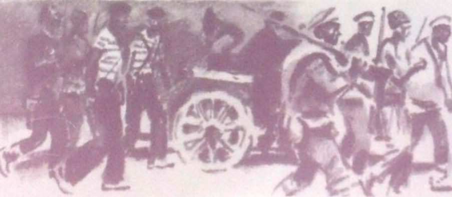 В матросской шапочке с прыгающими ленточками был уже недалеко, все так же сжимая винтовку, не спуская глаз, как будто боялся потерять из виду, упустить, и так же расталкивая густо зажимавшую его толпу, в шуме и криках шатавшуюся в разные стороны.