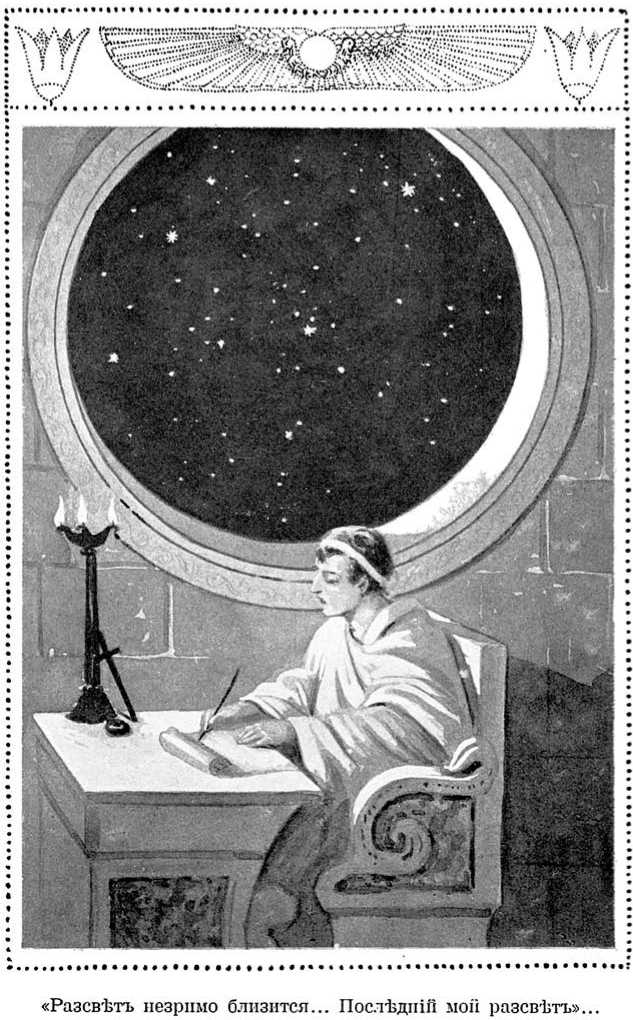 Тускнеет огонь моего светильника, не так уже непроницаема ночная мгла, рассвет незримо близится… Последний мой рассвет. Едва только покажутся лучи проснувшегося солнца и, пронизав утренний туман, позолотят вершину Попо и, отражаясь, упадут на кровли храмов и дворцов, как стража, охранявшая меня когда-то и стерегущая теперь, войдет ко мне и поведет в последний земной путь. Тридцать последних дней прошли и скрылись в вечности, и час настал. Все это время я провел безвыходно в моем дворце, где долгими беседами о Нем с красавицей Айрани и тремя другими девушками страны Анахуака им преподал те истины, который они должны будут хранить в своей душе, когда мой дух отлетит от распятого тела. Они с благоговением воспринимали глаголы великого Страдальца, и верю я, что образ Господа во всю жизнь не потускнеет в их душе и подкрепит их слабнущие силы в борьбе, которая их ждет. И в знак воспоминания о том, чему я научал народ Анахуака в последний год моей кончающейся жизни, просил я кроткую Айрани и трех других ее сестер воздвигнуть в этом мрачном и величественном храме священное изваяние креста, и пусть оно для них, а после — для четырех из тех, которые пойдут вослед за ними, является прибежищем и непрестанным зовом в обители небес. И пусть хранят они свою святыню, оберегая ее от злобы мстительных жрецов, дабы ненарушимым оставался символ Господа Христа, и не забыли бы о нем живущие в стране Анахуака.